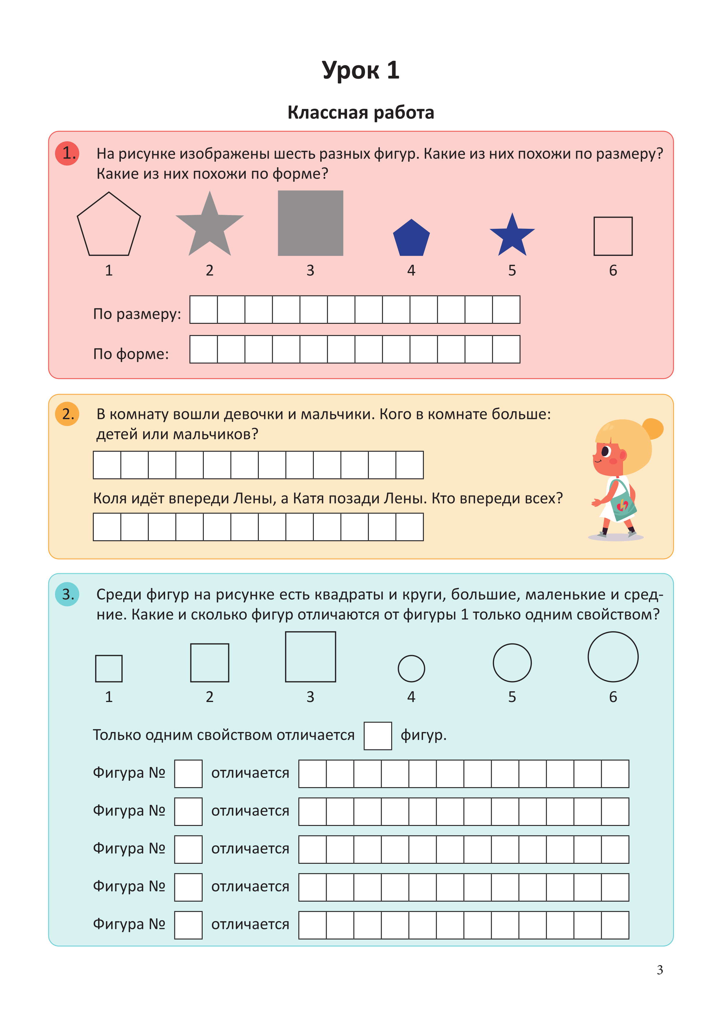 В пособии от Smart Class есть задания, позволяющие отработать отдельные сложные темы школьной программы (например, вычислительные примеры на сложение и вычитание в пределах 100, уравнения, арифметические задачи и схемы к ним). Но основу пособия от Smart Class составляют «нешкольные» задания: логические задачи, геометрические задачи и задания, олимпиадные и нестандартные задачи, задачи с буквами вместо чисел для развития абстрактного мышления.