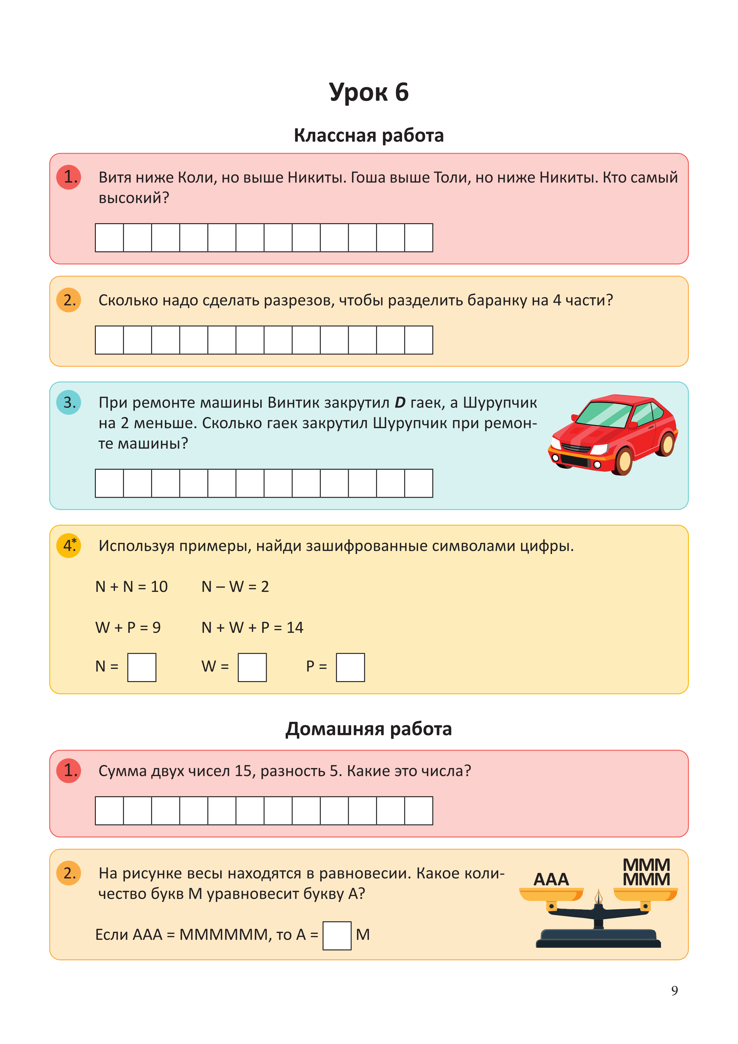 - ⦁ Есть задания для развития мышления первоклассников (например, составить слова из букв данного слова или решить анаграмму).