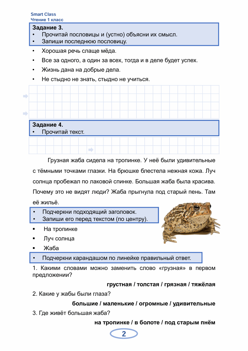 Для выполнения абсолютно всех заданий пособия недостаточно озвучить то, что написано — нужно понять значение слова или словосочетания, смысл предложения или текста!